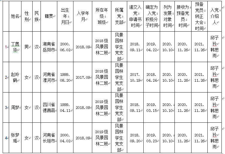 风景园林学院风景园林学生党支部 2021年下半年预备党员转正公示