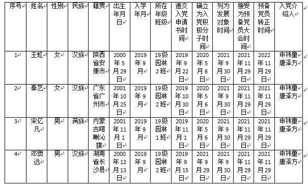 风景园林学院园林学生党支部2022年下半年预备党员转正公示