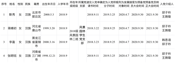 风景园林学院学生党支部2021年下半年预备党员转正公示