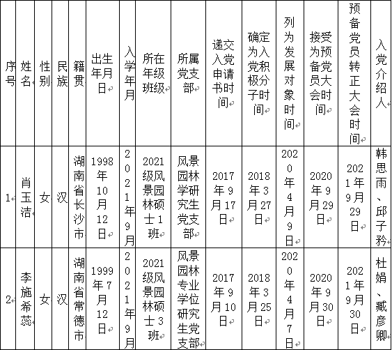 风景园林学院党委研究生党支部2021年下半年预备党员转正公示