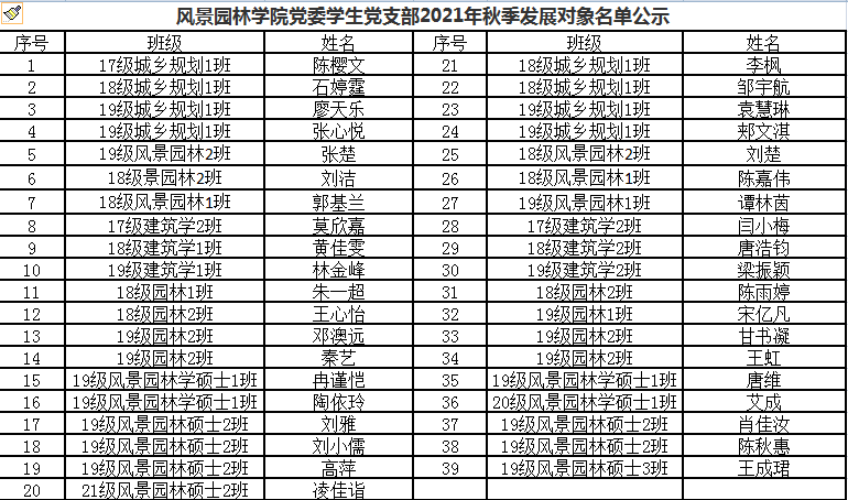 风景园林学院党委学生党支部2021年秋季发展对象名单公示