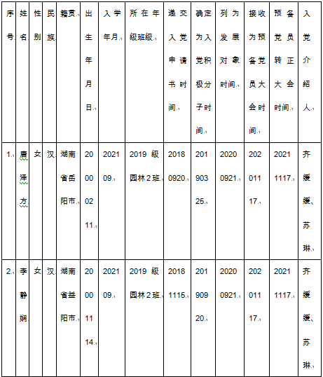 风景园林学院园林学生党支部2021年下半年预备党员转正公示