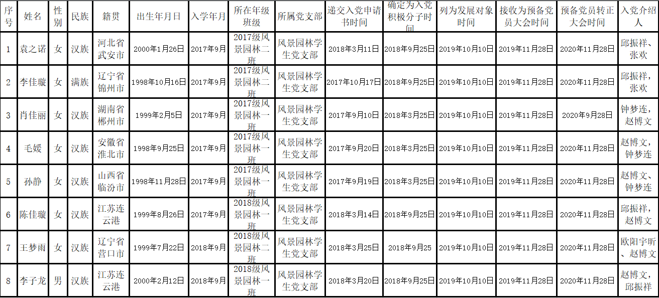 风景园林学院学生党支部2020年下半年预备党员转正公示