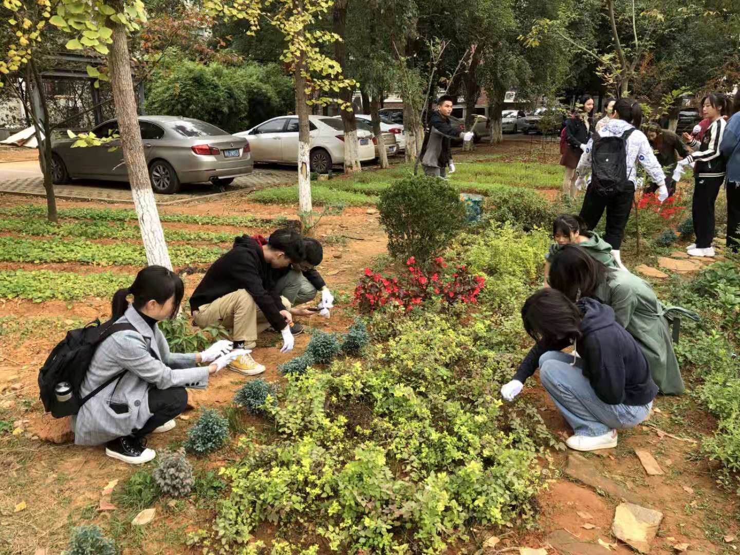 这次党日活动的主要内容有清理至美楼前花境的杂草野草;将至美楼前的卫生进行清扫,并清洁园林小路;对室内外花卉植物进行浇水和施肥;挂上与植物相对应的二维码牌。