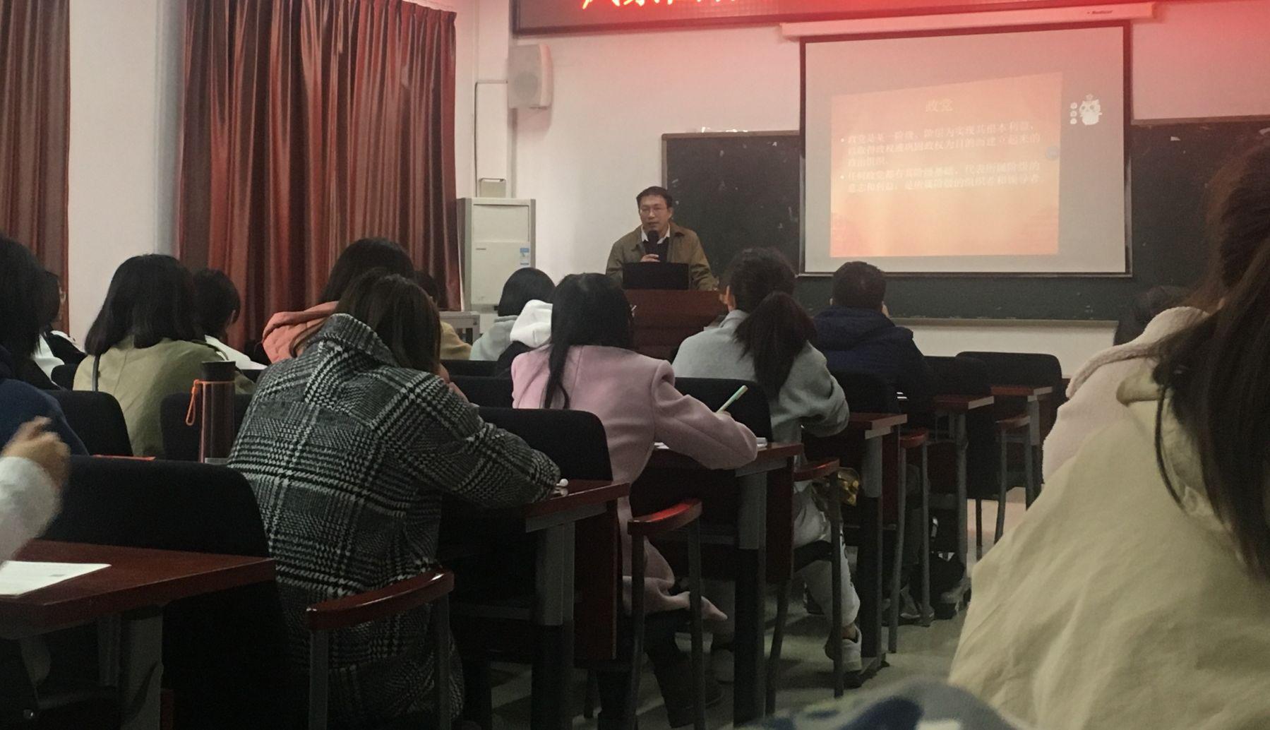 2018年12月2日下午15:00,风景园林学院第61期入党积极分子培训第六课在至美楼218教室成功开展,本次讲课的是马振山老师,课程的主题是“党的宗旨和指导思想”。