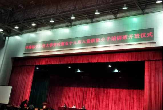 2017年10月27日晚七点,中南林业科技大学党校第五十九期入党积极分子培训班开班仪式在体艺馆举行,我院入党积极分子参加活动。