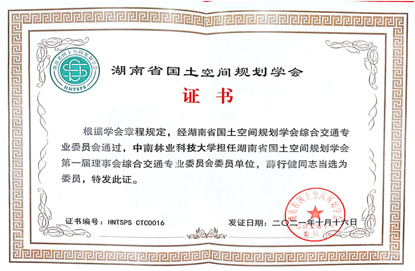 我院薛行健副院长受邀聘为湖南省国土空间规划学会综合交通专业委员会委员