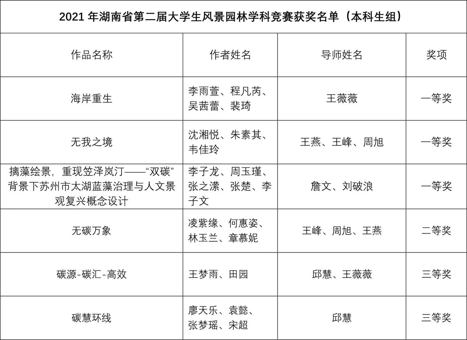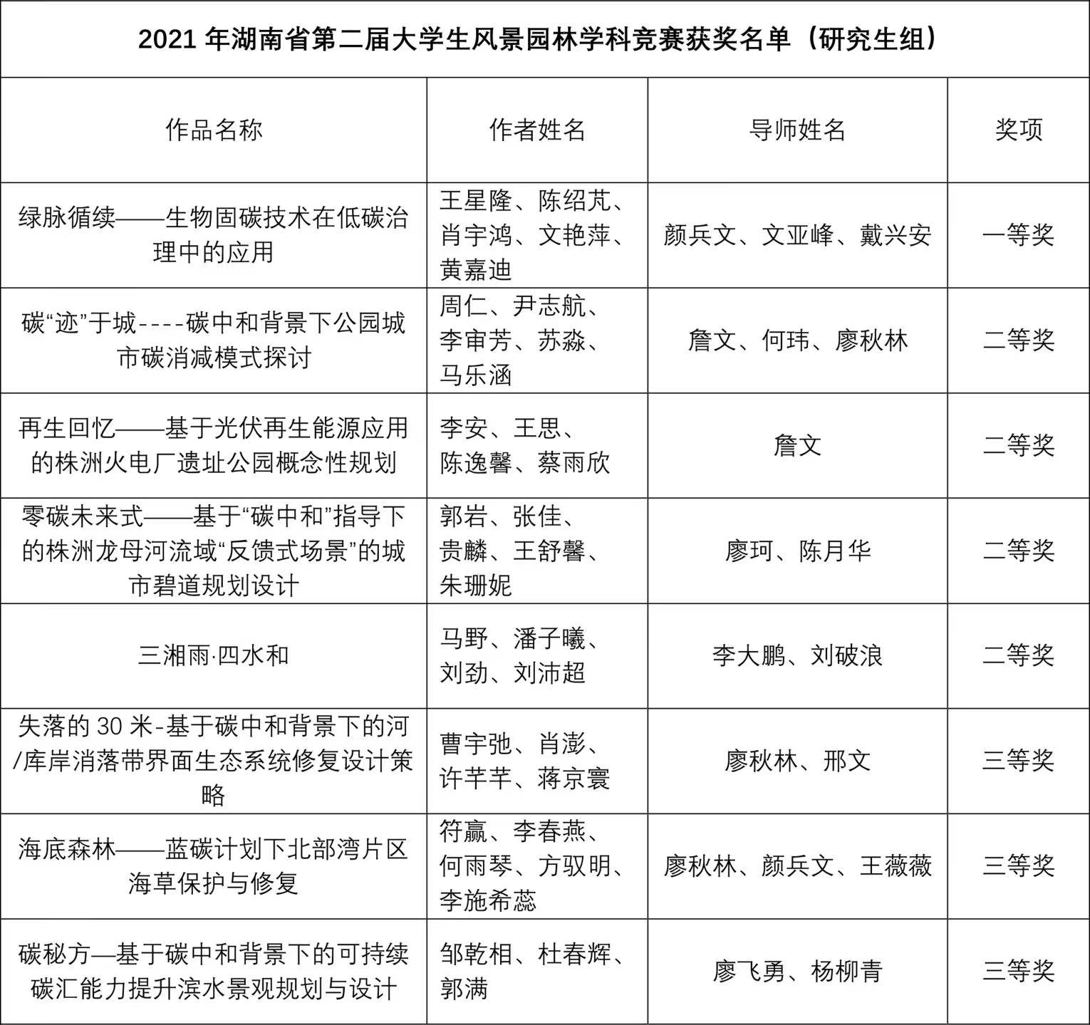 为深化生态文明教育,践行可持续发展理念,加强学科专业建设,促进学生专业发展,第二届湖南省大学生风景园林学科竞赛聚焦“碳达峰、碳中和”,并于12月完成了最终评选。