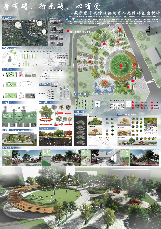 作品名称:身有碍,行无碍,心有爱-基于感官代偿理论的盲人无障碍花园设计