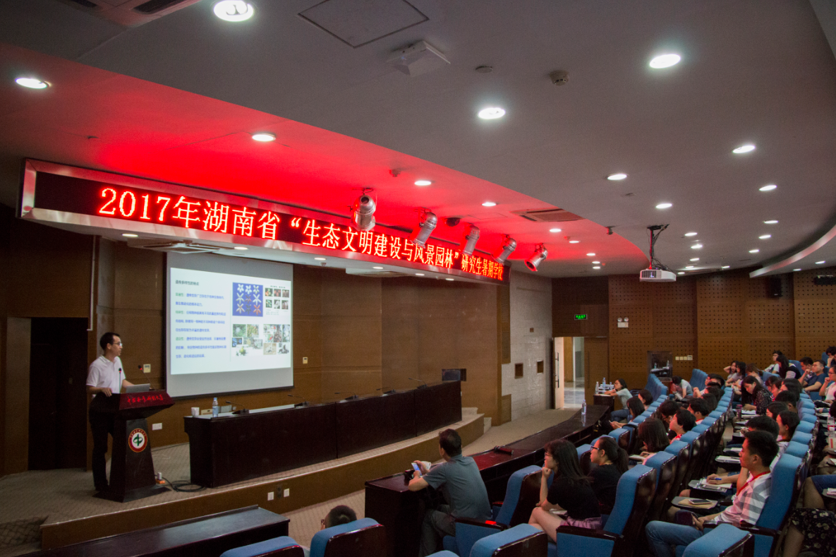 2017年7月2日下午15:00,湖南省“生态文明建设与风景园林”研究生暑期学校第三场报告在我校图书馆报告厅举行,我校风景园林学院副院长文亚峰研究员为主讲人,报告主题为“生物多样性保护与生态文明建设”。