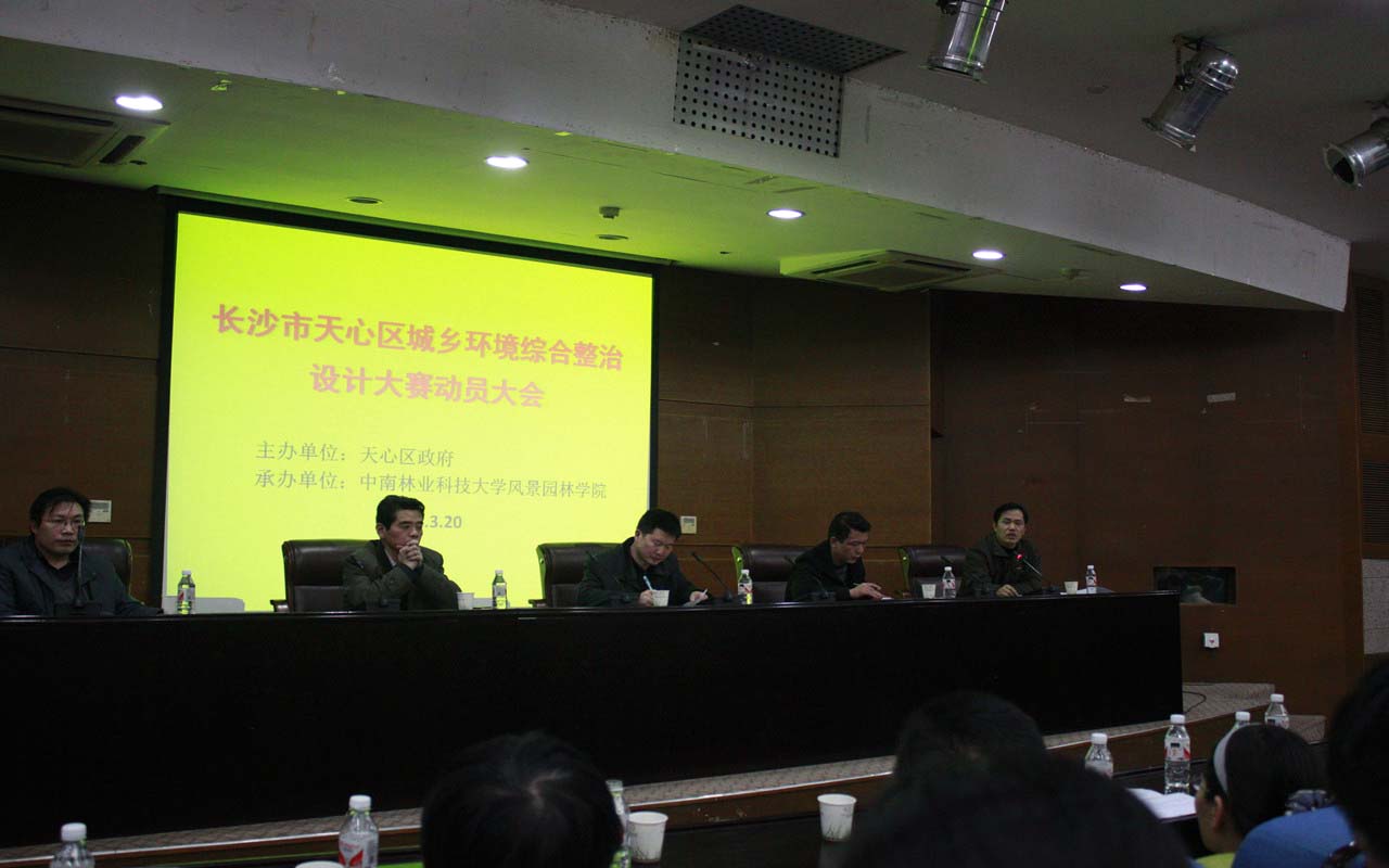 3月20日晚,长沙市天心区城乡环境综合整治设计大赛暨动员大会在我校图书馆报告厅举行。校党委副书记秦立春、长沙市城管局执法监督处副处长程代国、天心区城管局副局长刘克平等出席活动。大会由风景园林学院党总支书记马振山主持,学院教师和学生代表200余人参加会议。