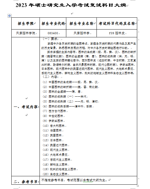 风景园林学院2023年硕士研究生入学考试复试科目考试大纲