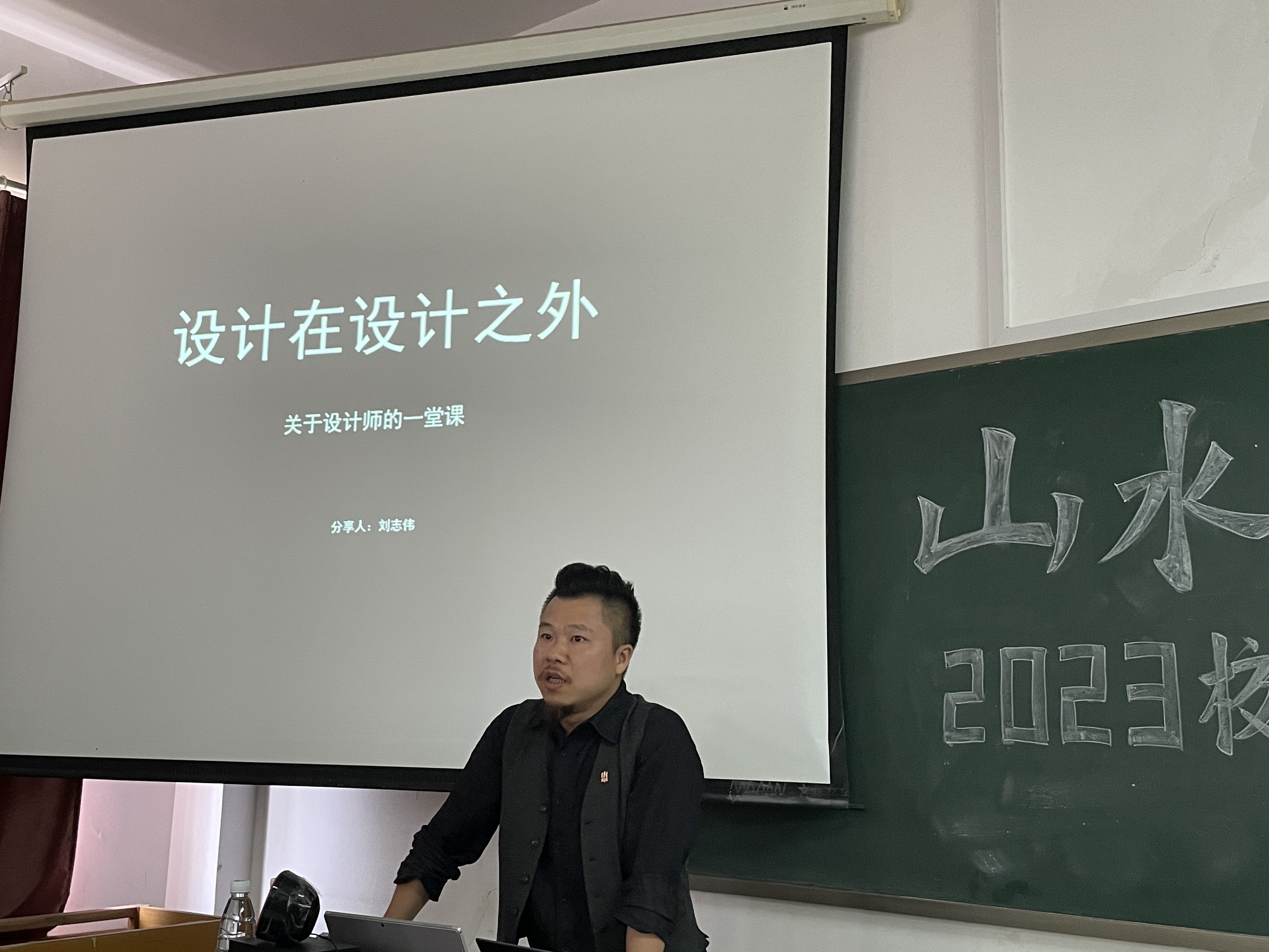 在介绍完企业的基本情况和招聘需求后,刘志伟给同学们上了主题为“设计在设计之外”的一堂课,他以生动的实际项目案例入手,讲叙了生态景观与设计专业的有机融合,并结合党的二十大报告对设计专业与乡村振兴之间的协同发展进行了解读。(一审/陈葭奇 二审/阳俊坤 三审/夏传格)