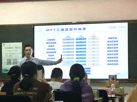 熊烨与在场学生们进行了交流与互动,并且通过问答的方式让学生了解在职场将要面临的挑战。为大家列举了几个关于大学生初入职场的困惑,包括工作压力大,社会适应能力偏低等,并为大家详细讲解了克服困难的五个方法,例如保持学习和成长的心态,明确职业生涯规划等。他还详细介绍了管培生制度,培养时间为三年,主要分为四个阶段,即职业人,专业人,初级管理者,精通管理者,企业会为管培生提供规模化的课程。要求管培生具备:积极阳光,认同华苑园林的文化理念,具备清晰的逻辑思维及良好语言能力,有强烈的事业心,具备管理潜质,专业课成绩优秀这六个方面的潜质。