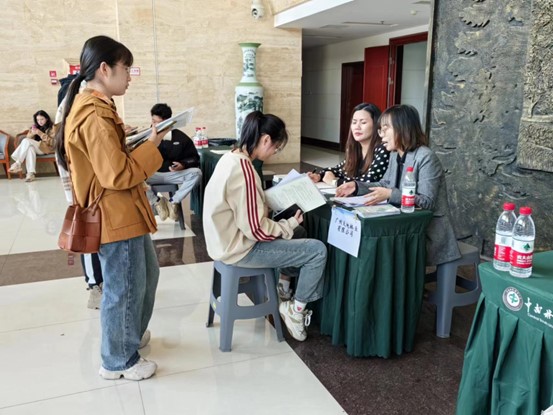 经过一个月的筹备,来自广西、广东、湖南等地的19家优质单位前来招聘。深圳市新西林园林景观有限公司、深圳市华阳国际工程有限公司、广西国有高峰林场、广西国有维都林场等知名企业参与本次招聘会。19家企业涉及国有林场、生态环保类、景观规划类等,共提供474个就业岗位。招聘会当天吸引近500名学生到场,毕业生现场投递简历400多份。