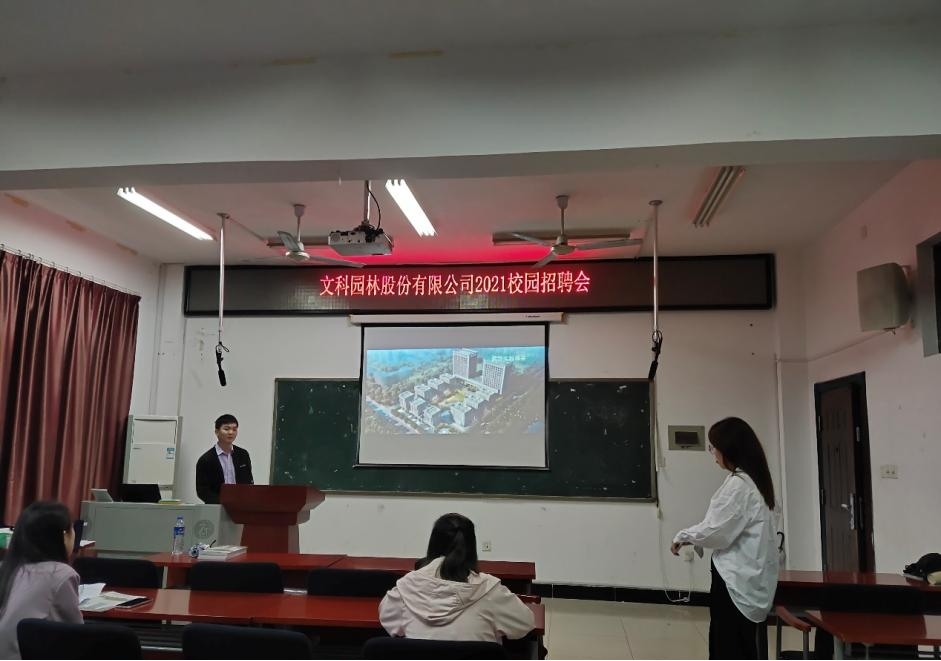 深圳文科园林股份有限公司人事部负责人为大家放映了公司的宣传视频,介绍了公司的概况与发展,并对同学们的提问做了解答。