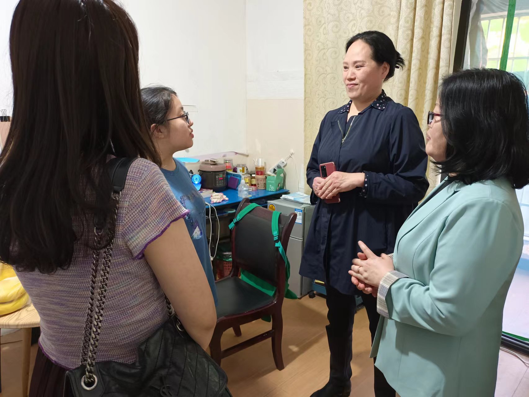 为进一步加强学生的教育、管理与服务工作,及时了解学生的思想动态。4月15日,风景园林学院学工办集中走访学生宿舍,实地了解学生在宿舍的学习、生活、心理等情况,为学生送去关心和问候。风景园林学院党委副书记刘智娟,院团总支书记袁杨,全体本科生辅导员参加本次活动。