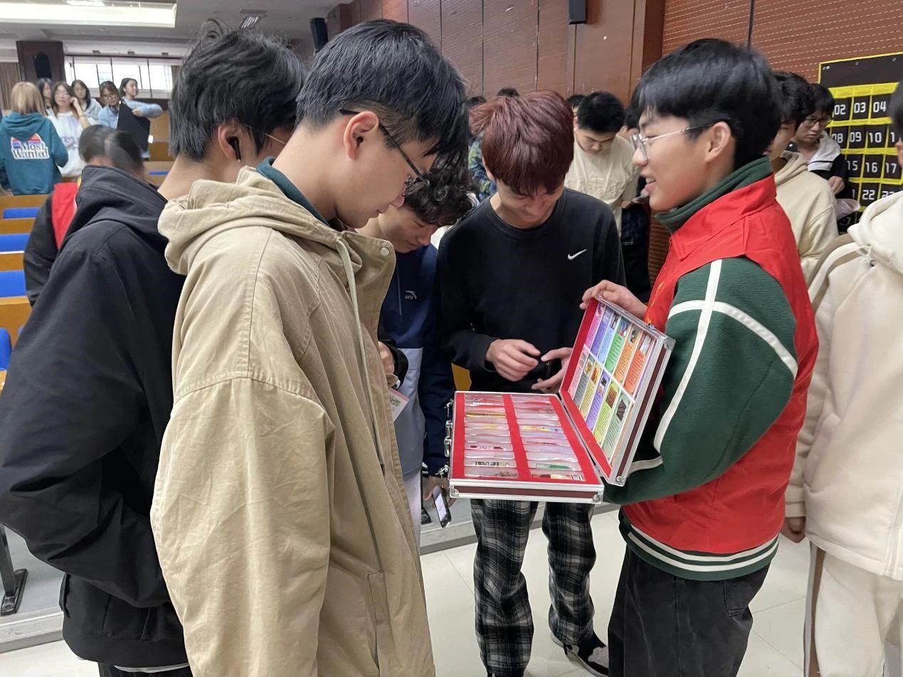 在活动开始之前,为让同学们更好的了解毒品类型,志愿者拿着毒品仿真样品围绕教室进行展示,同时发放禁毒宣传手册。
