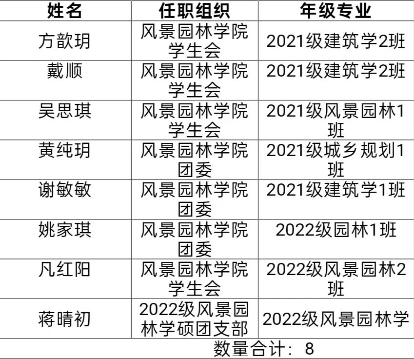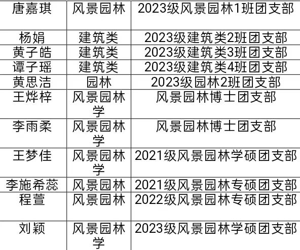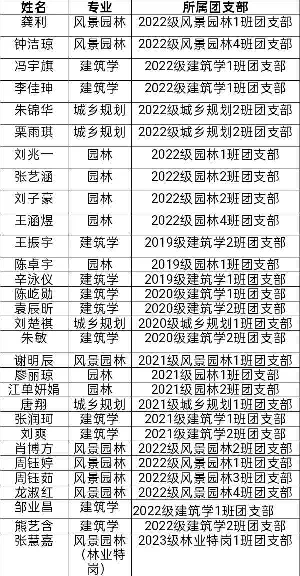 通知公示|中南林业科技大学风景园林学院2023-2024年度团内评优拟推荐名单公示