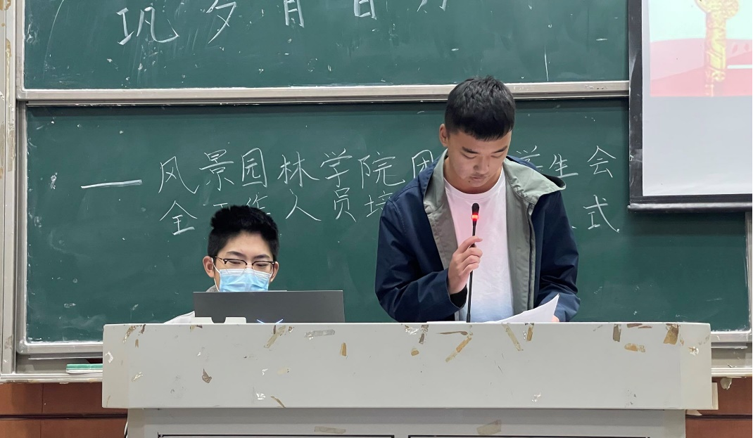 2021年12月12日,风景园林学院团委及学生会工作人员培训开训仪式在树木楼一楼会议室举行,出席的老师有学院党委副书记熊小卫老师、团委书记王清扬老师。