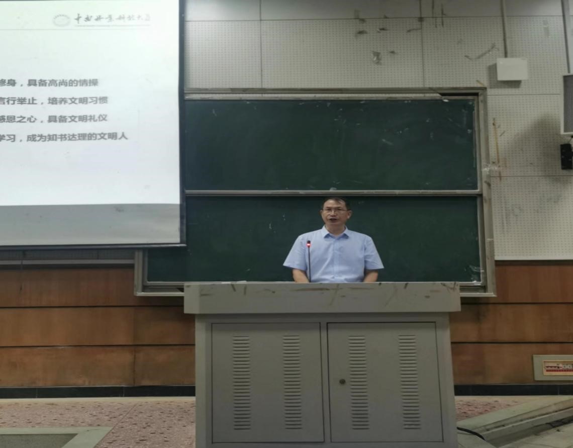 院长文亚峰教授首先对新同学们的到来表示热烈欢迎,接着他向同学们介绍了学校发展历史和学院基本情况,对全体新同学提了三点希望:一是志存高远,做美丽中国的建设者;二是“明事理、懂礼节”,做知书达理的文明人;三是快乐学习,做身心健康的时代青年。