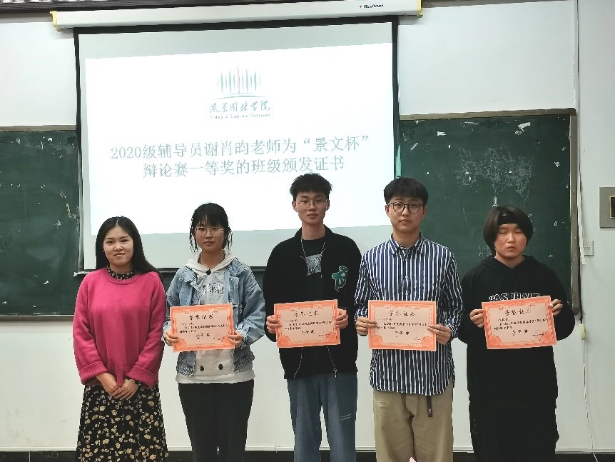 2021年4月28日晚上19:00,风景园林学院第五届“景文杯”辩论赛决赛在至美楼218举行。此次辩论赛由正方建筑类三班对战反方建筑类一班,双方的辩题是“佛系标签对青年人的成长利大于弊/弊大于利”。出席本次辩论赛的有风景园林学院2018级辅导员王清扬老师、2020级辅导员谢肖昀老师、团委学生会常务副书记昌睿鸿、团委学生会主席唐浩钧、团委学生副主席张子玥以及学生会各部门部长。本次比赛还有幸邀请到风景园林学院原辩论队队长程凡睿、政法学院辩论队指导罗德威、中南林业科技大学辩论队副队长彭露。