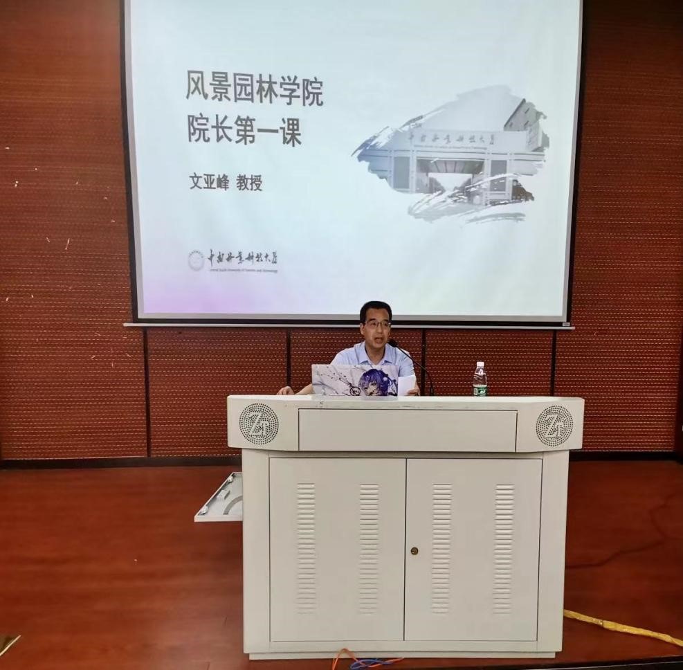 风景园林学院执行院长文亚峰教授讲授“院长第一课”,他从学院历史、专业介绍、教研成果等多个方面详实介绍学院概况。给全体新生提出了三个要求:一是立德立行,做对国家、社会有用的人;二是努力学习,做知书达理之人;三是勤于锻炼,做新时代的健康青年。