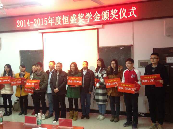 12月7日下午3:00,恒盛奖学金颁奖仪式于环艺楼二楼研究生教室举办,到场嘉宾有广州恒盛园林股份有限公司副总经理林相忠,人力资源部经理陈思颖,成本控制部经理陈锋,成本控制部副经理罗文咏,综合部副经理黄兴,预决算部主管卜国华。