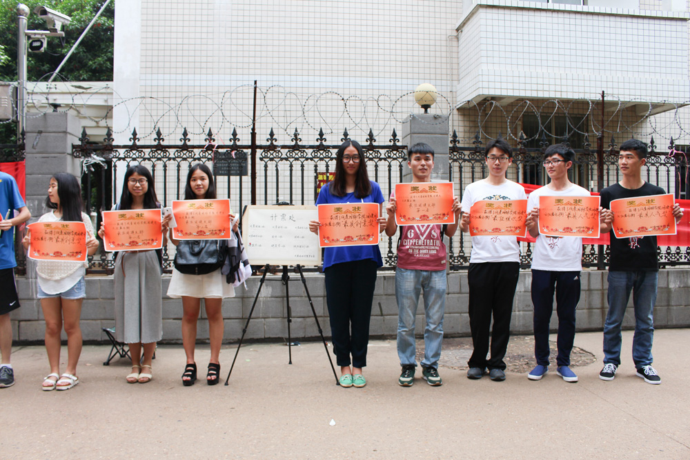 5月17日上午9:00,由风景园林学院团委学生会主办的风景园林学院团建月总结文化展示街活动在五食堂门口隆重开幕。担任本次活动评委的有:12级辅导员蒋柯夫,常务副书记肖晋驿,团委副书记艾心,学生会主席王正阳,副主席王铭康、吴妍,以及学生会各部门部长副部长。