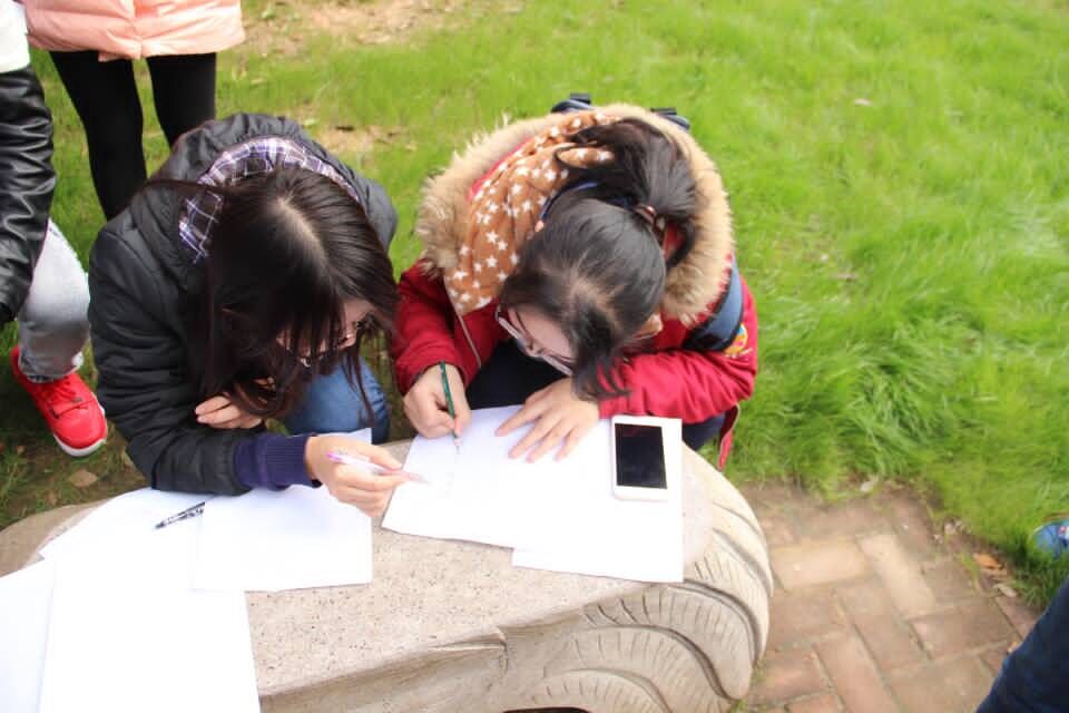 本次活动摒弃了以往单调的问卷调查,采用了闯关与问卷调查相结合的形式,大大提高了同学们的积极性与活动参与度。活动共设有四个关卡,第一个关卡为“植物大搜查”,目的是让同学们认识并学会辨别各类植物;第二个关卡为“风林猜猜猜”,旨在以游戏的形式加强同学们对专业名词的理解;第三个关卡为“寻找十二生肖”,希望能以此提升同学们的平面构图能力;第四个关卡为“越测越开心”,即在测量与汇报的过程中锻炼同学们的实地考察与讲解能力。在整个闯关过程中还伴随着关于橘子洲环境的问卷调查与采访。同学们在活动中表现热情积极,每个环节都认真投入。
