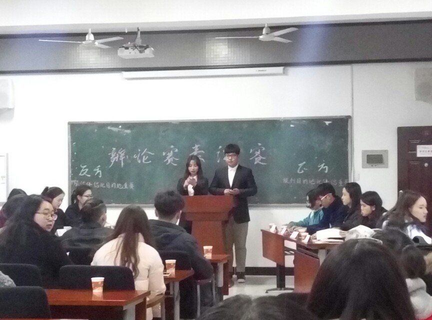主持人首先介绍了本次比赛的辩题为“旅行中旅伴和目的地哪个更重要”。正方一辩通过其清晰的思路,冷静的分析配上快速的语速点燃了比赛的气氛。接着反方一辩则发表论点认为旅伴是为了旅行而存在的,旅伴让旅行更精彩。在随后的攻辩环节中,双方更是针锋相对、步步紧逼,辩论观点逐渐延伸,两方被对手抓住的问题也逐渐变多,现场气氛迅速升温,达到白热化阶段。大赛继续进行,进入自由辩论环节,这一环节非常能够体现辩手的辩论技巧和应变能力,每位辩手在这一环节的发挥也向在场的观众证明了他们的实力。继短暂而精彩的观众提问环节后,比赛进入总结陈词环节。正反双方辩手清晰的思路和巧妙的陈词给观众留下了深刻印象。