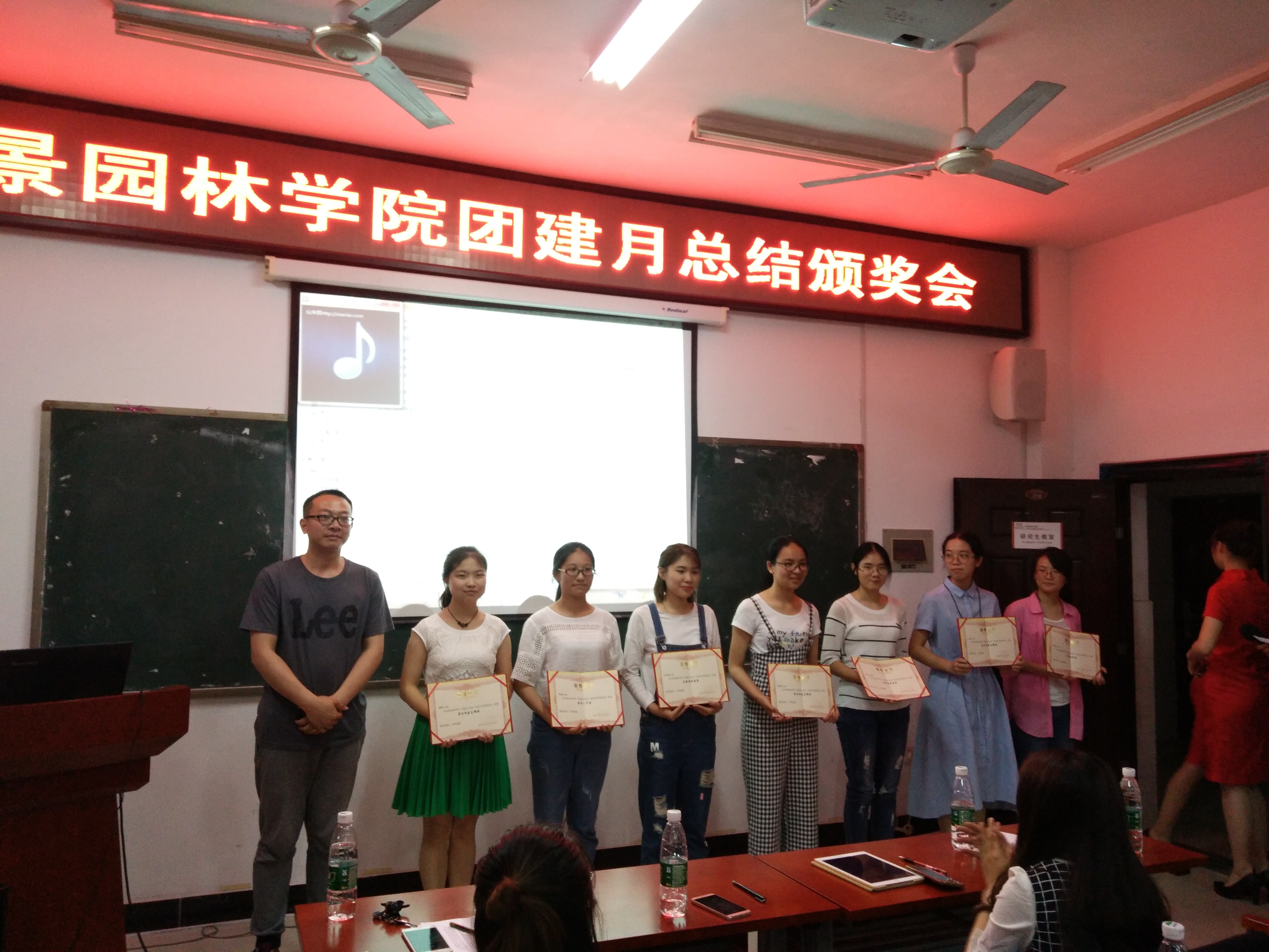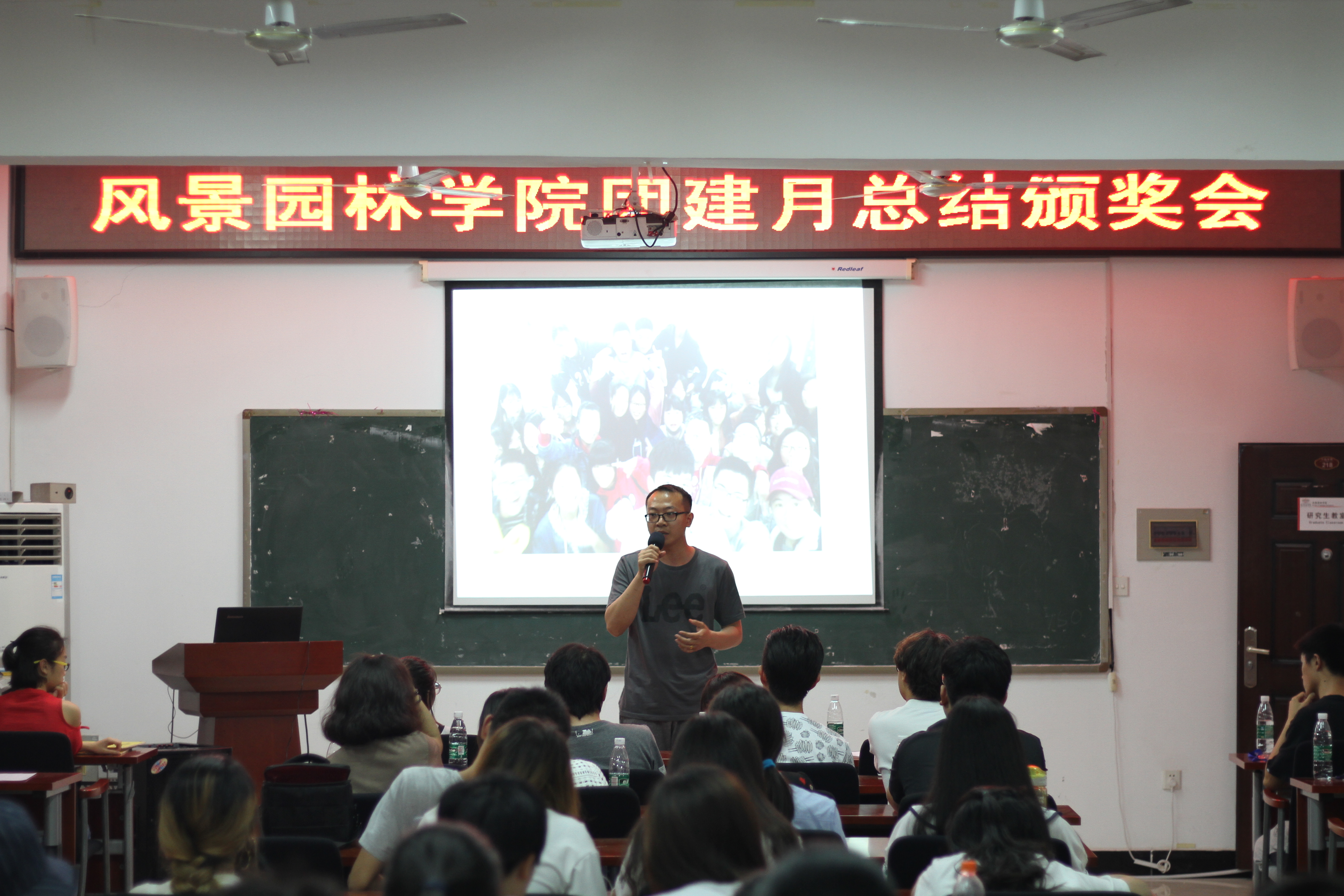 5月12日晚7点,风景园林学院团建月总结颁奖会在第十教学楼研究生教室举行。参加本次颁奖会的有团委书记王睿、16级辅导员老师谢肖昀、校团委组织部成员、学院学生会主席团全体成员以及学院各部门部长、副部长。