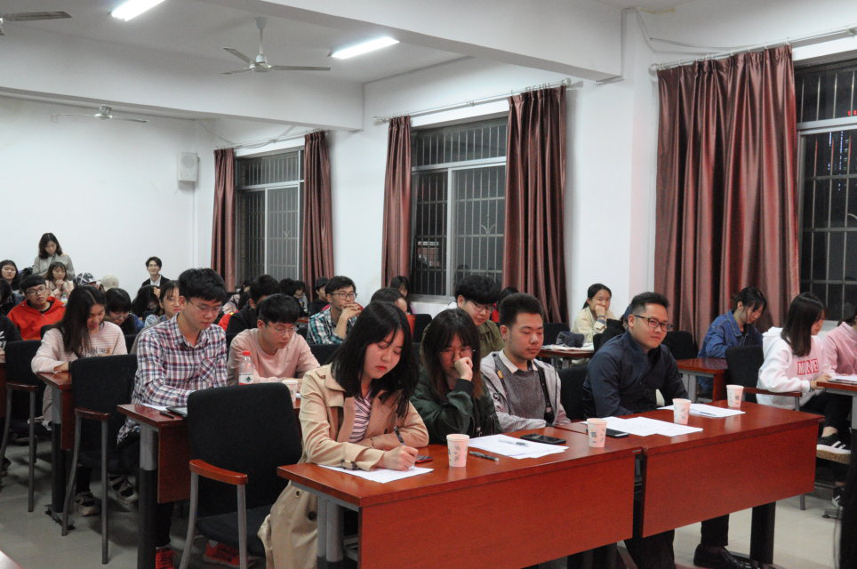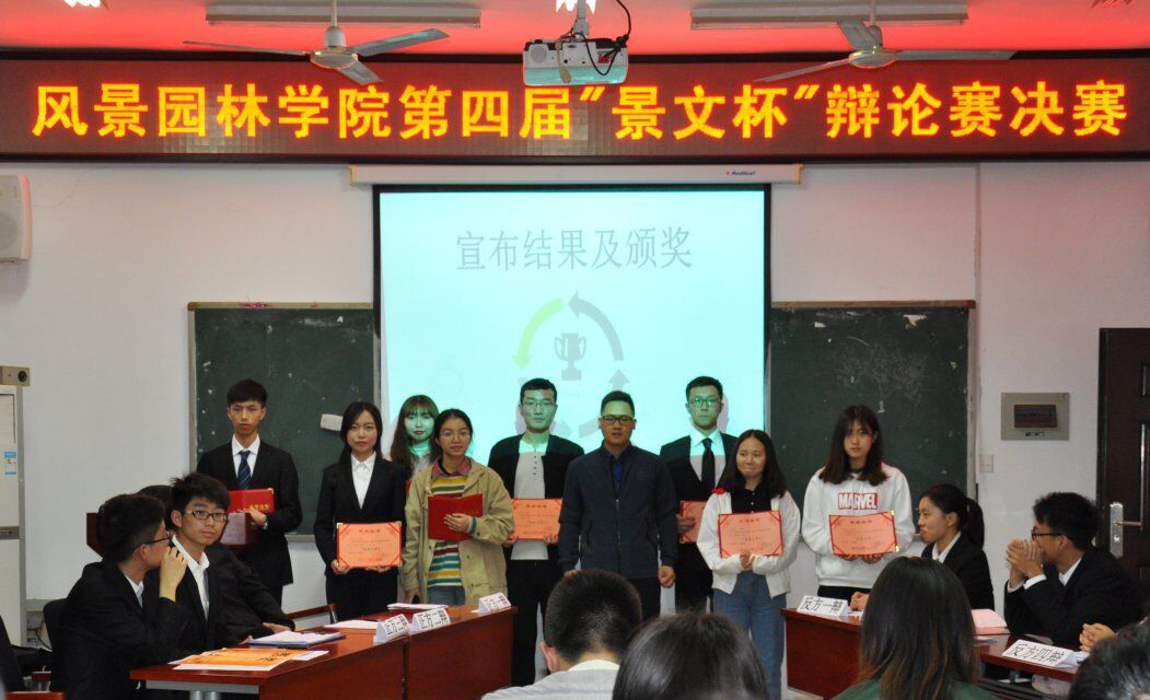 2018年4月13日晚七点,风景园林学院“景文杯”辩论赛决赛在学校第十教学楼研究生教室举行。风景园林学院团委书记阳俊坤出席,学院各个部门主要负责人及风景园林学院辩论队队长郑婉茹、宋瑶以及前辩论队优秀辩手周治煊。