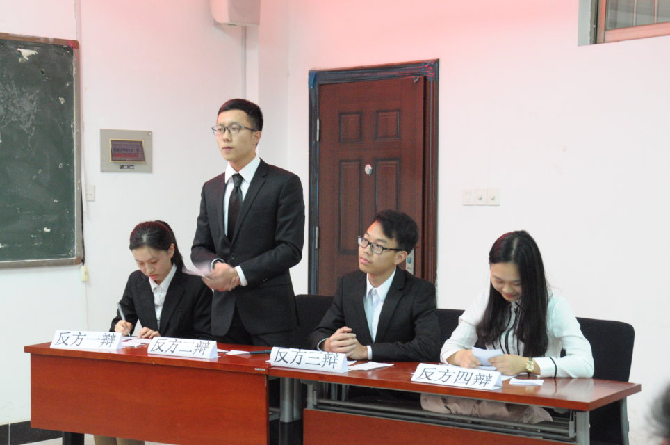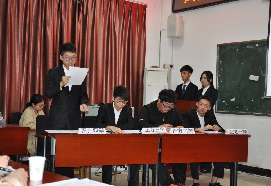 本场比赛的辩题为“加强教育和严法律人哪个更有利于降低犯罪率”。正方为2017级建筑二班,观点为“严法律人有利于降低犯罪率”。反方为2017级风景园林二班,观点为“加强教育更有利于降低犯罪率。”