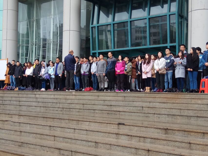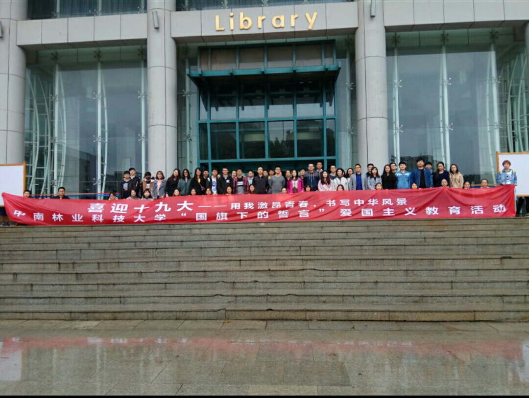 2017年10月16日早上七点,中南林业科技大学风景园林学院“国旗下的誓言”之“用我激昂青春,书写中华风景”主题爱国主义教育活动于图书馆前坪举行。风景园林学院党委副书记熊小卫、学工办全体成员,学院全体党员、预备党员,学院全体班干部以及2016、2017级全体学生参加了本次活动。