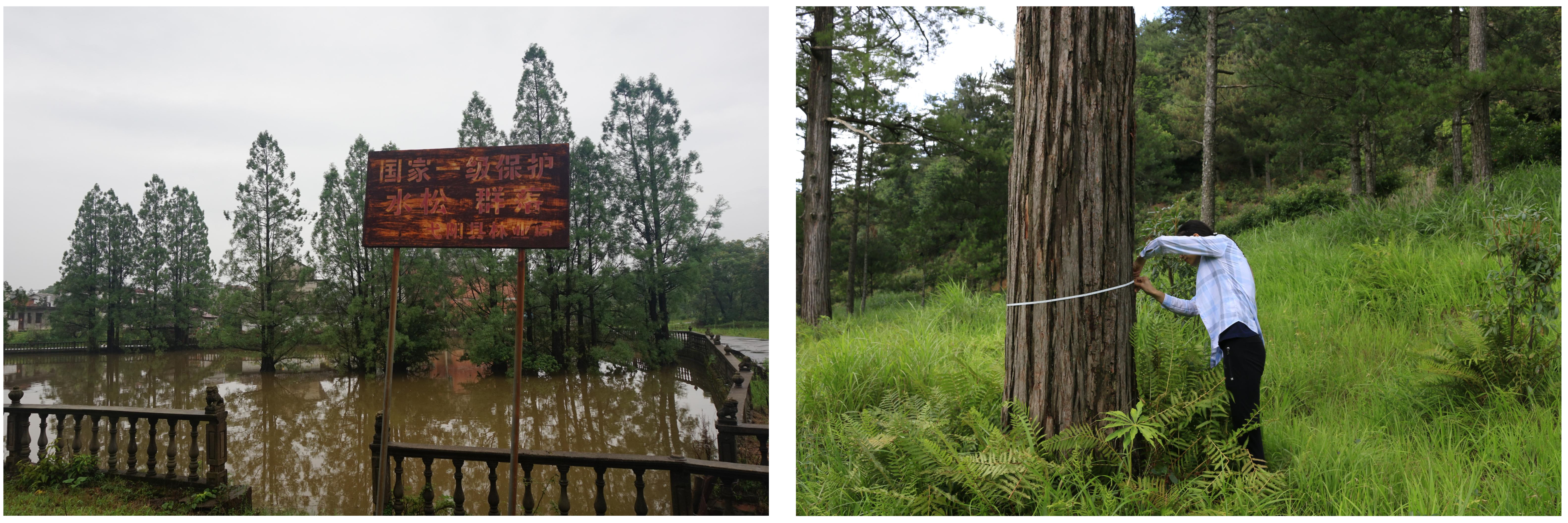 水松(Glyptostrobus pensilis)是国家一级保护树种,现零星残存于我国广东、广西、福建和江西等省区,处于极度濒危状态。除我国外,水松还在越南、老挝有少量天然种群分布。针对全球水松保护,团队还与爱丁堡皇家植物园合作,利用分子标记技术研究水松天然种群的遗传结构,揭示其遗传变异的分布模式和种群分化历史,探讨气候变化对水松现有地理分布的影响。研究成果在国际期刊Forestry上发表,相关研究为标准制定提供了科学依据。