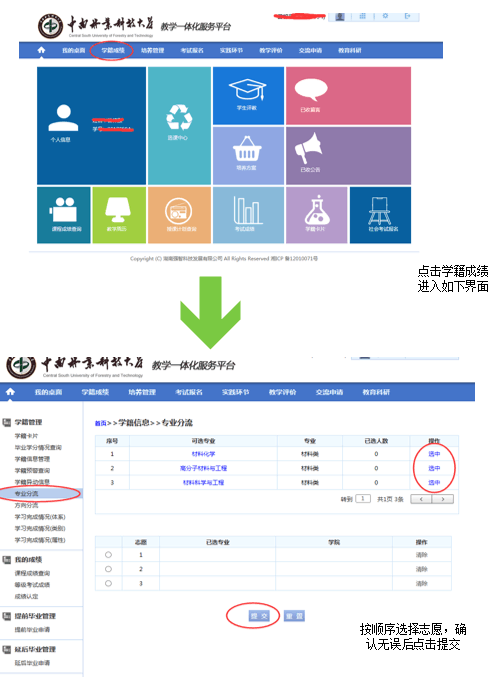 3. 学生填报志愿。在个人教务管理系统填报志愿,每个学生填报一个志愿,操作方法见附件《专业分流志愿填报流程》。2022年5月13日17:00前完成志愿填报。