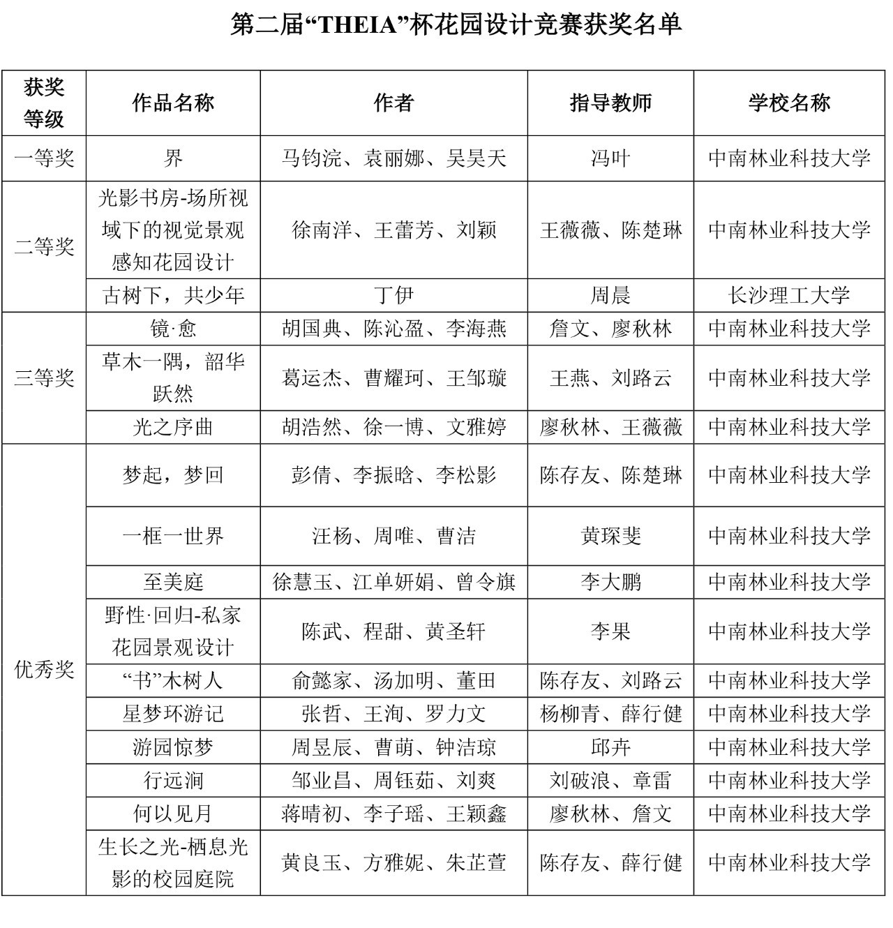 中南林业科技大学第二届“THEIA”杯花园设计竞赛获奖名单公示