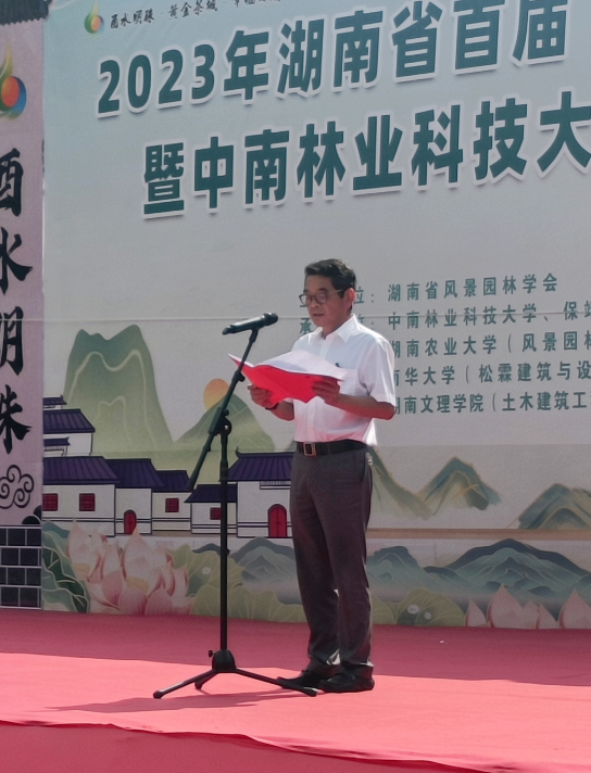 我校党委委员、副校长王忠伟教授于启动仪式中致辞,他指出湖南省首届“和美乡村·幸福庭院”创意设计大赛是提升保靖乡村多元价值,赋能乡村产业发展,促进宜居宜业“和美乡村”建设的创新尝试,是将党的治国理念和乡村振兴战略在保靖县落实落地、促进保靖实现中国式现代化的生动实践。最后他祝愿各参赛队伍赛出风格,赛出水平,为美丽保靖的建设贡献当代大学生的智慧和力量。