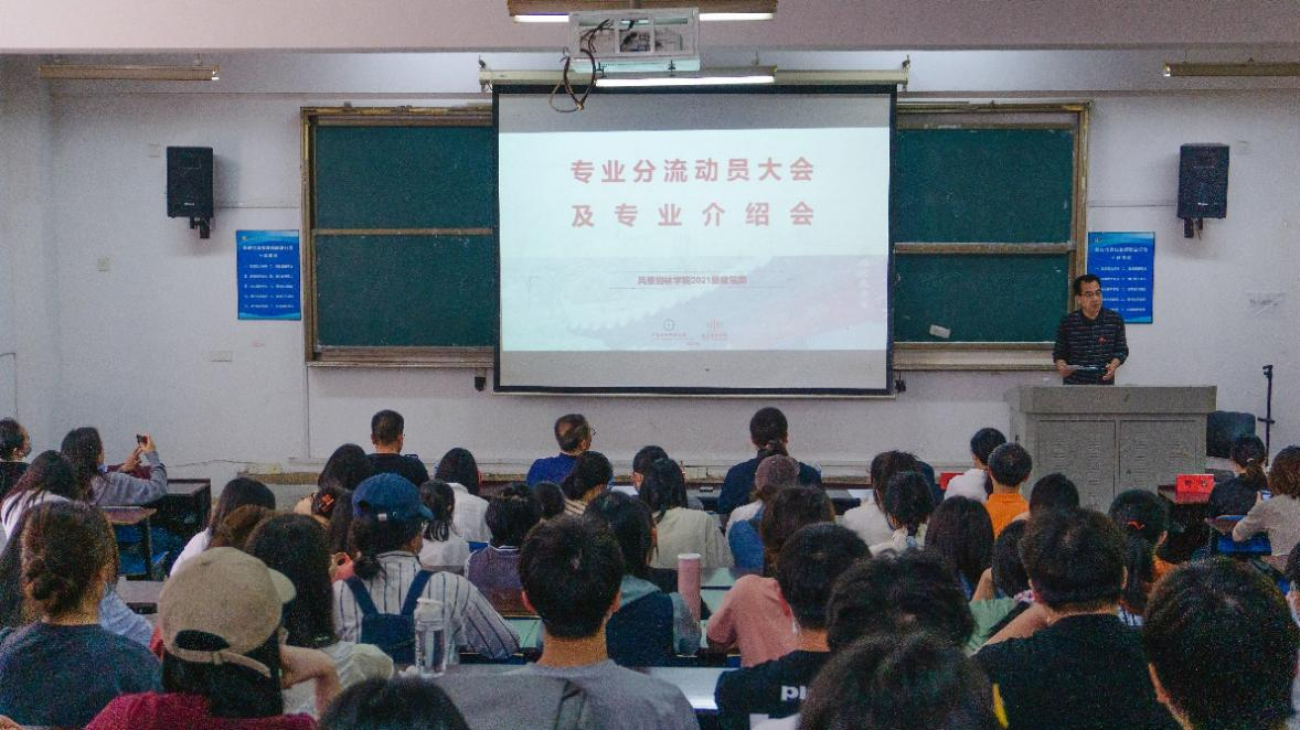 5月3日下午,风景园林学院在树人楼北101教室举行2021级建筑类专业分流动员大会。学院党委书记夏传格、院长文亚峰、教学秘书胡年秀,城乡规划系主任陈存友、建筑学系主任何玮及两系有关老师,2021级建筑类全体学生参加了会议,会议由薛行健副院长主持。