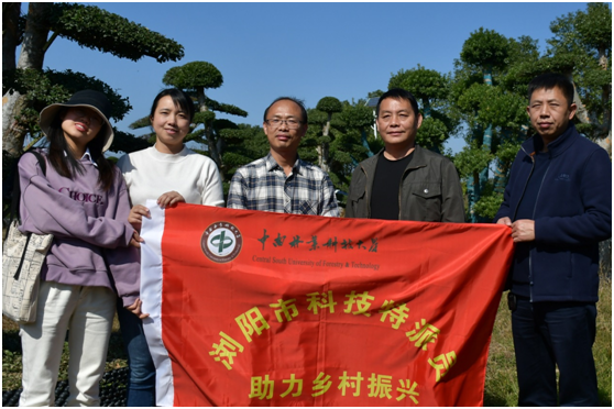 廖飞勇教授为浏阳市第十四批科技特派员,在官渡镇田郊村溪友种植合作社开展乡村振兴技术服务期间,针对该合作社生产的需求,对罗汉松、红檵木、榔榆等植物种植和修剪的需求,进行了相关的技术指导。
