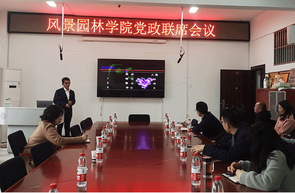 2021年3月18日下午两点半,风景园林学院于至美楼三楼会议室开展学院党政联席会议。仇怡副校长参加会议,并听取了学院的概括和学科建设相关情况。学院党政领导班子、全体行政人员、学院教师代表均参加此次会议。