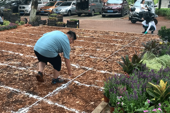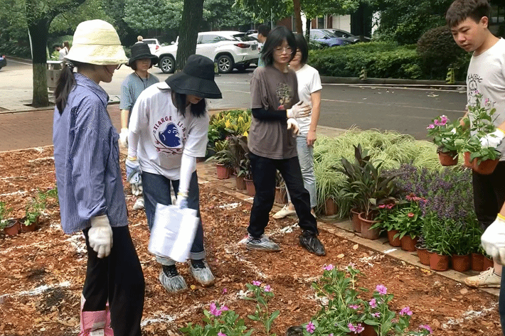 早在6月,在风景园林学院党委的号召下,由风景园林学院教室王晓红、邵凤侠、张雨朦等组织部分研究生们召开了花境的定调会议:践行生态文明,改善学院环境,献礼建党一百周年。不管是老师还是学生,大家都拿起了锄头齐上阵。在园艺师傅辅佐下,陆续完成松土增肥、平整放线、搬运植物、移栽摆放、配置花境等一系列工作。最终在7月1日前完成整个花境的设计选种以及施工建设。打造红色底色,创新学习内容,突出绿色特色,以实际行动庆祝建党100周年。