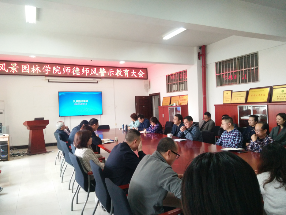 4月16日下午2:30,风景园林学院在至美楼306会议室召开了师德师风警示教育大会。学院全体教职工参加会议,学校副校长王忠伟出席会议并对学院加强师德师风建设提出具体要求。
