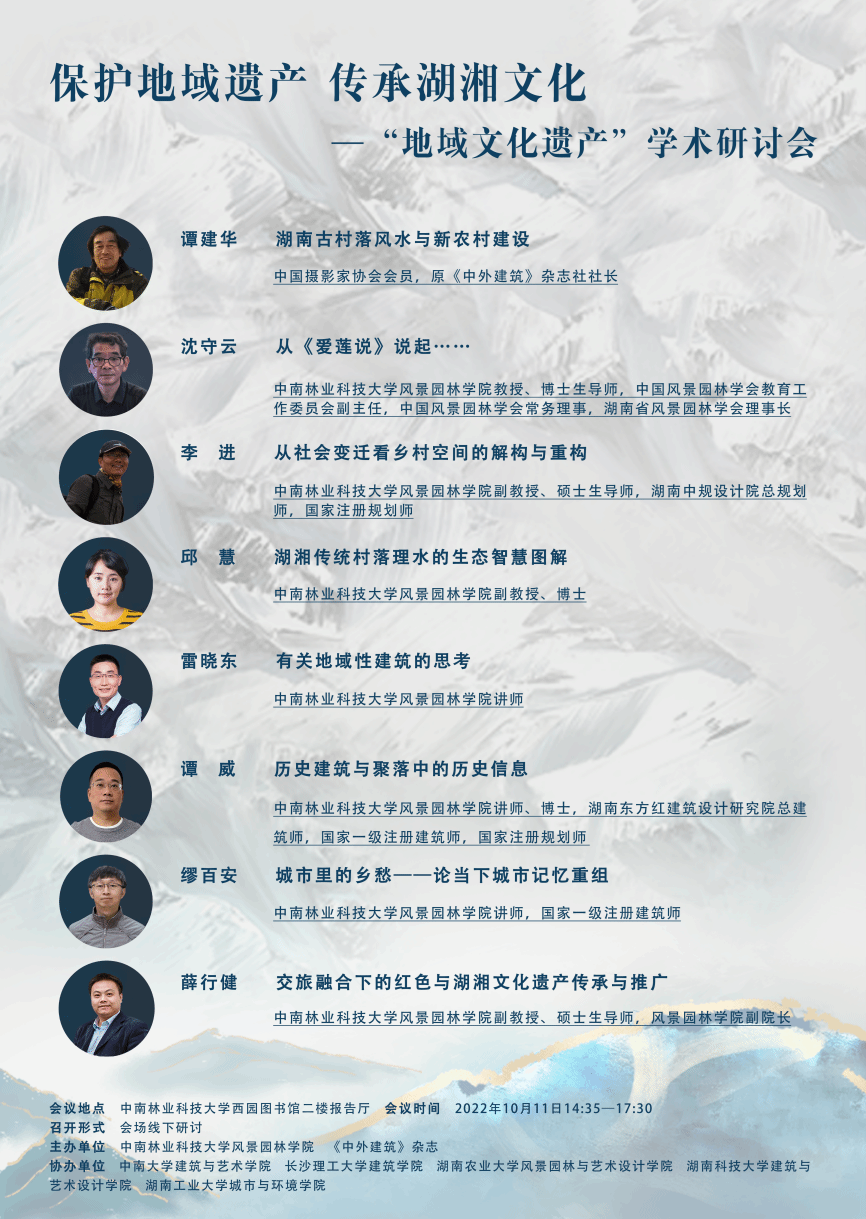 保护地域遗产,传承湖湘文化——“湘魂的摇篮,湖南古村”摄影巡展暨“地域文化遗产”系列研讨会即将开展,第二站开幕仪式与学术研讨会将于10月11日在中南林业科技大学西园图书馆召开。
